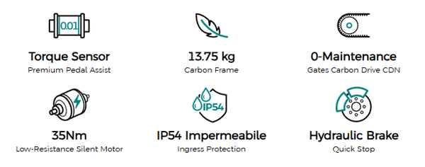 Izrađen od karbonskih vlakana, težak samo 13,75 kg, on je utjelovljenje lagane mobilnosti. Njegov futuristički dizajn govori o napretku, hrabrosti i nepokolebljivoj predanosti u razvoju nove generacije električnih bicikala. Uz hvaljeni pokretni senzor usklađen sa tihim motorom, bicikliranje postaje užitak bez napora. Air je projektiran za čistoću vožnje. Odbacujući sve osim bitnog, uz samo šapat vjetra i sjaj svjetala, nudi neusporedivo iskustvo bicikliranja. Osjetite slobodu. Doživite Air.