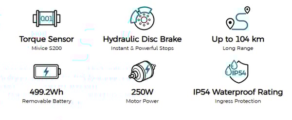 Ovaj bicikl idealan je izbor za duge gradske vožnje i savladavanje raznolikih terena. S novim senzorom koji dovršava prijenos signala u milisekundama, pruža glatko i iznimno osjetljivo iskustvo vožnje. S impresivnim dometom do 104 km i prednjim ovjesom od 40 mm, osigurava udobnu i sigurnu vožnju, bez obzira koliko neravne gradske ulice bile.